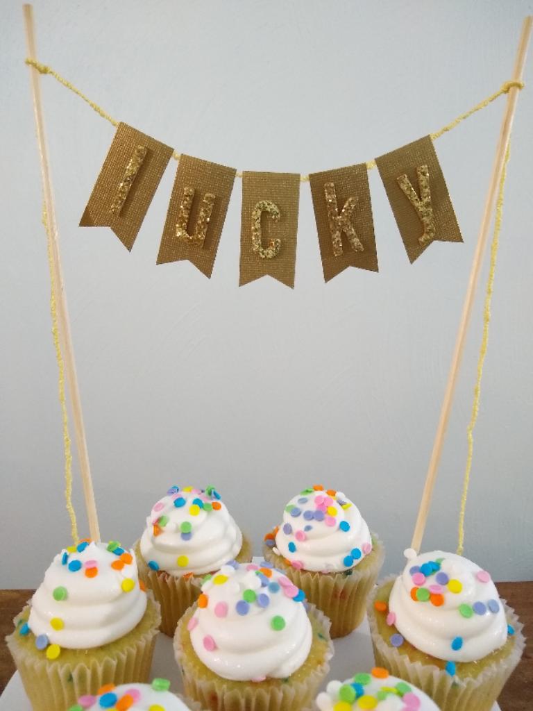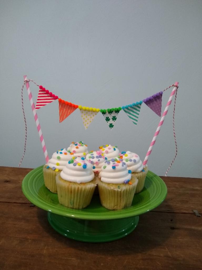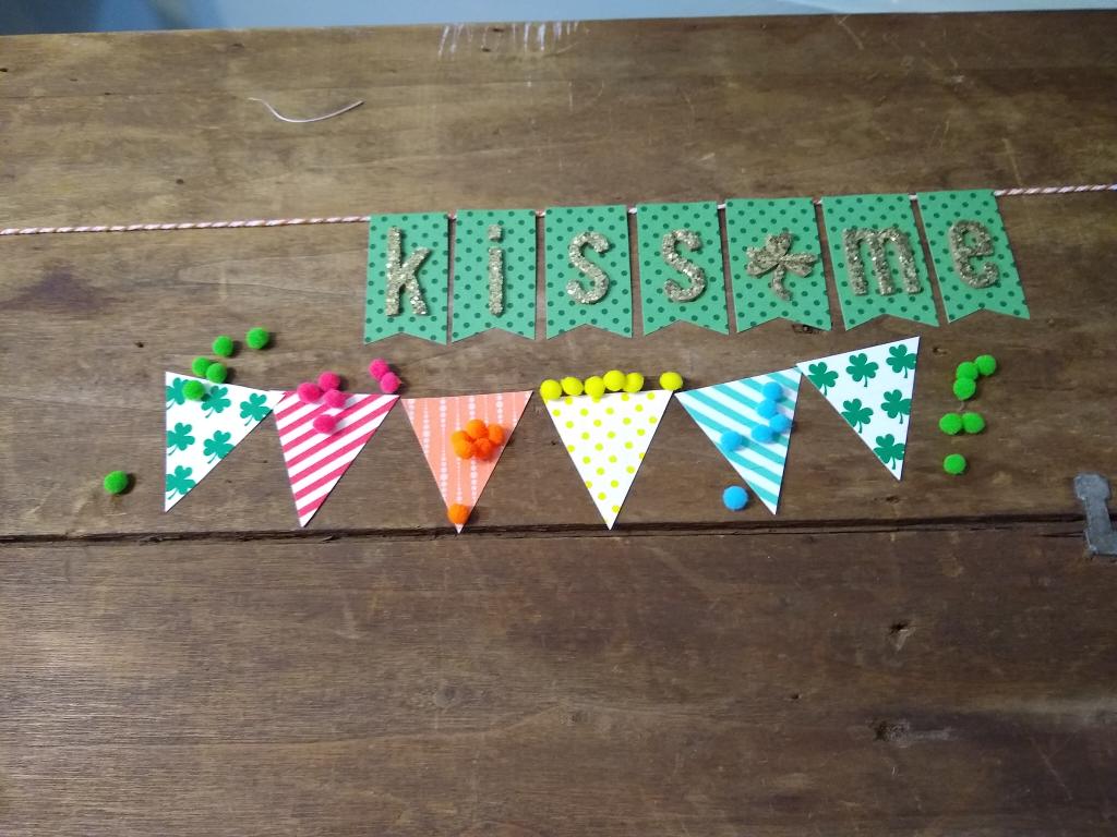 Need a quick centerpiece for your St. Pat’s party? These buntings are equally cute decorating a potted shamrock.