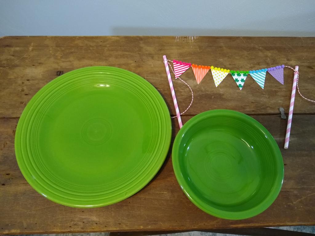 Don’t have a cake plate? Here’s an easy way to create one: Use a coordinating dinner plate and bowl, turn the bowl over and place the plate on top. Super simple. You can use a dab of hot glue to hold them together temporarily. I don’t recommend hot gluing Grandma’s china, but sturdy dishes will be fine. The glue peels right off when you are done with your “cake stand”.