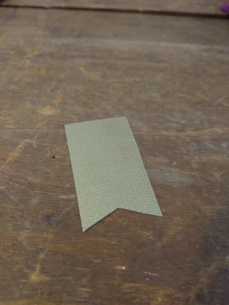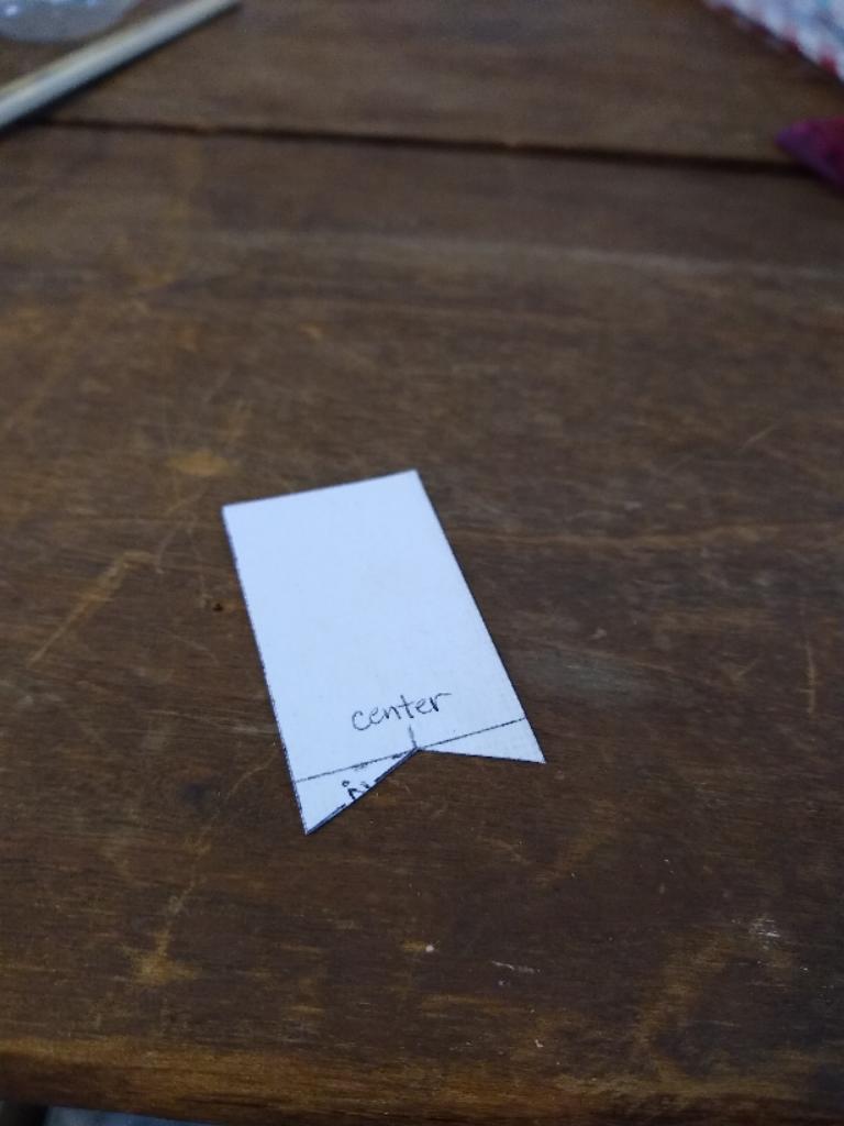 Determine the size you will need by measuring the largest letter sticker you will use. The Kiss Me and Lucky letter flags are approximately 2” x 1 1/8”. To make the notch in the bottom of the flag, measure ¼” from the bottom and mark it. Now find the center and mark it. With a ruler or straight edge, draw a line from the center point to the corner of the flag. Cut along the lines.