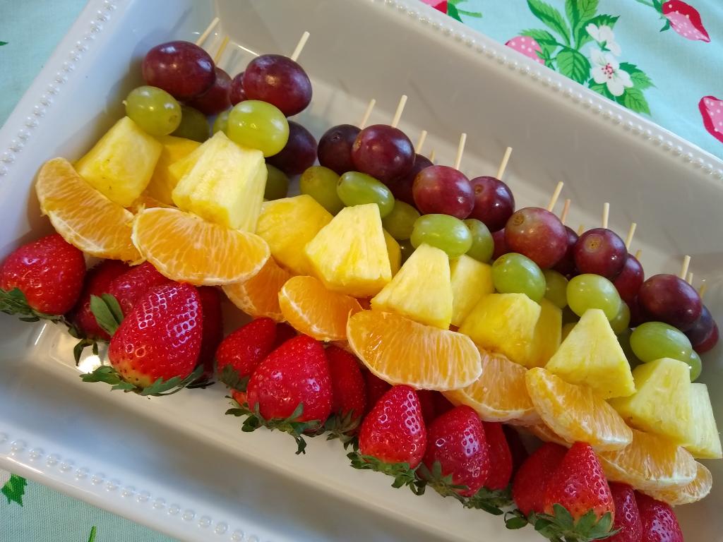 Choose any fruit that you enjoy in the colors of the rainbow. Cut into similar size pieces and arrange in ROYGBIV order.