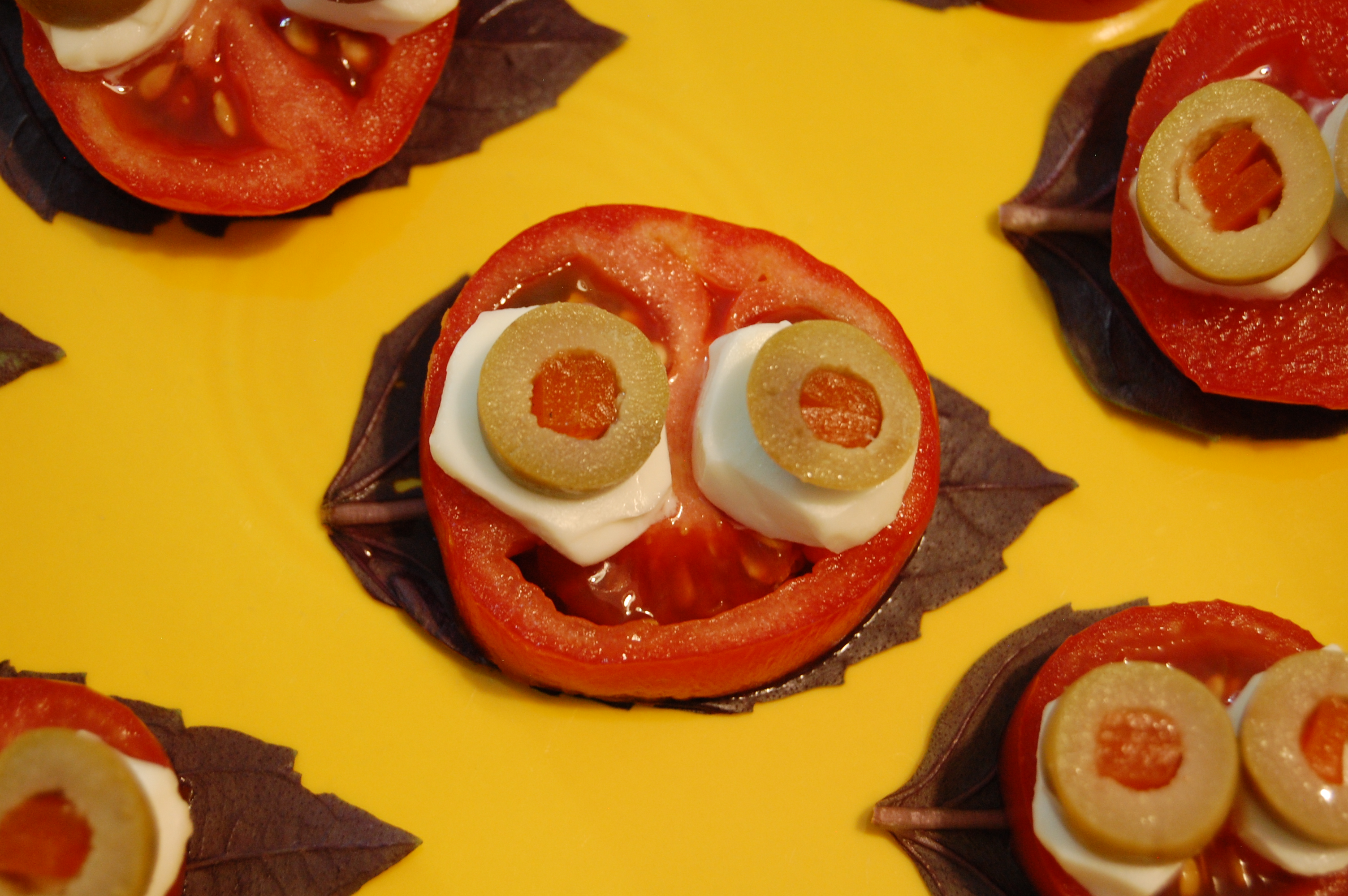 These fun creatures are more assembly than recipe. Adults can prepare the ingredients and kids can help with assembly. These are best made just before serving, or provide the ingredients, and let your guests assemble their own creatures.