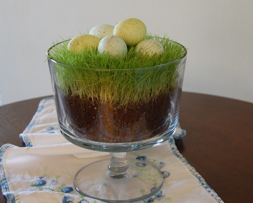 Here’s a fun, early spring project to brighten up your home. This is simple enough for kids to do with very little adult assistance. Tending this tiny garden takes just seconds each day, and is so satisfying because you see results very quickly! Using the tutorial in this post, grow a fresh crop of grass for your spring decor.