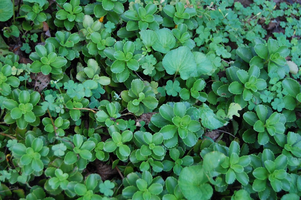The yellow variety was a gift, but I believe it’s a ‘Kamtschaticum‘. This semi-evergreen ground cover blooms in late spring, much earlier than the mounding varieties. Once it’s finished blooming, you’re left with a carpet of glossy, green leaves. Even though it has a spreading habit, it’s easily controlled. Kamtschaticum is tough as nails and thrives in the harshest conditions. I’ve had this variety in a hanging basket on the garage for several years and it rains seeds down into the gravel below. Now I have a nice patch of sedums growing underneath in my hot, dry, gravel driveway!