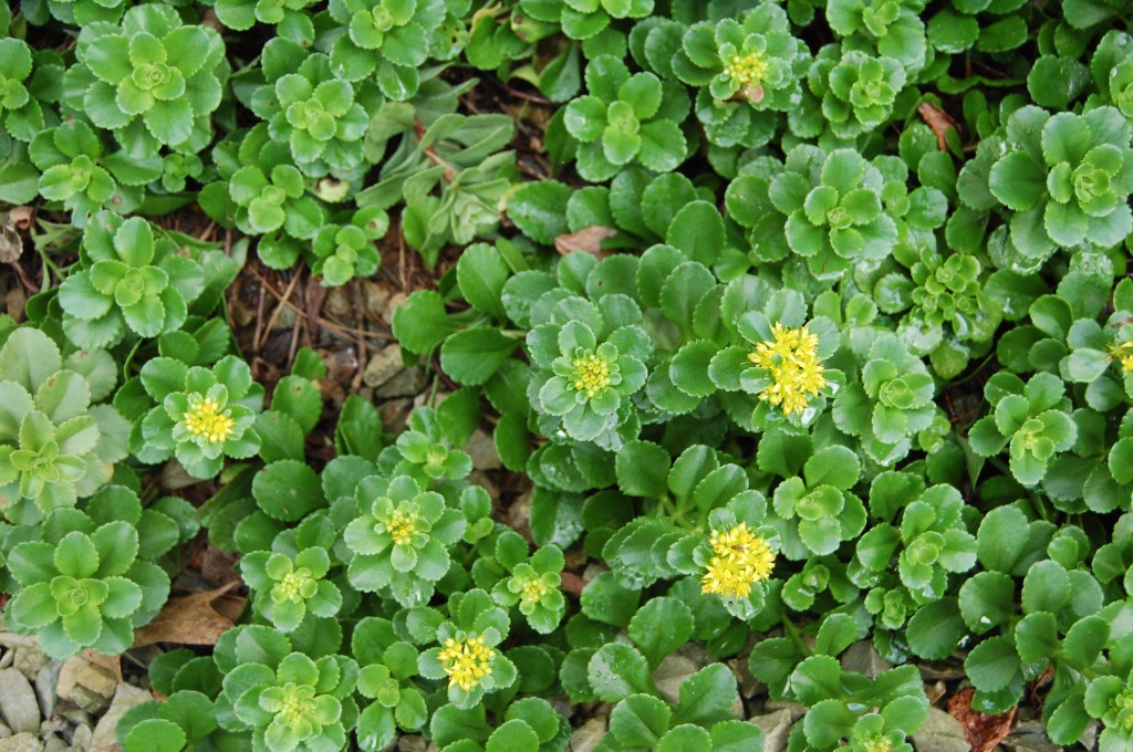 Sedums are non-native perennials, great for hot, sunny rock gardens and dry slopes; they store up water in their succulent type leaves. While they love full sun, they’ll tolerate a little shade. They grow just fine in average to poor soil as long as it is well-drained. Give them sunshine and dry feet and they will be happy.