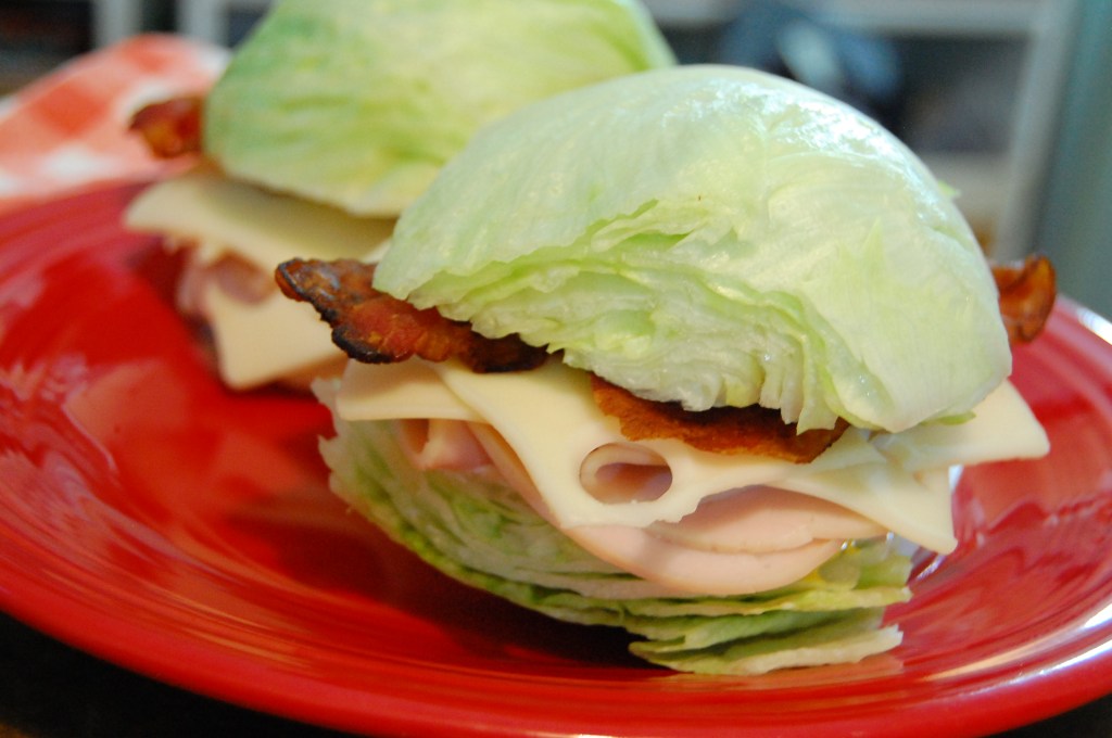 Turkey Bacon Swiss on Lettuce Buns. Not so much a recipe, but a sandwich idea. My sandwich is based on the one linked below with a few substitutions. Slice the lettuce cheeks thinly, they don’t compress like bread. These are best assembled just before serving.
