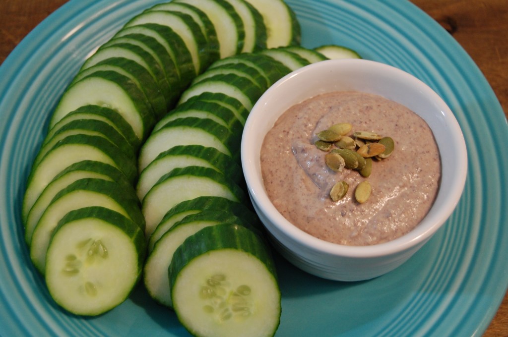 Along with the usual watermelon, popcorn, apples, bananas and oranges, we’re snacking on black bean hummus with cucumber slices. I love Ina’s hummus and sometimes substitute black beans for the chickpeas in this recipe. Cucumber slices make low-calorie, low-carb ‘crackers’ for dips and spreads.