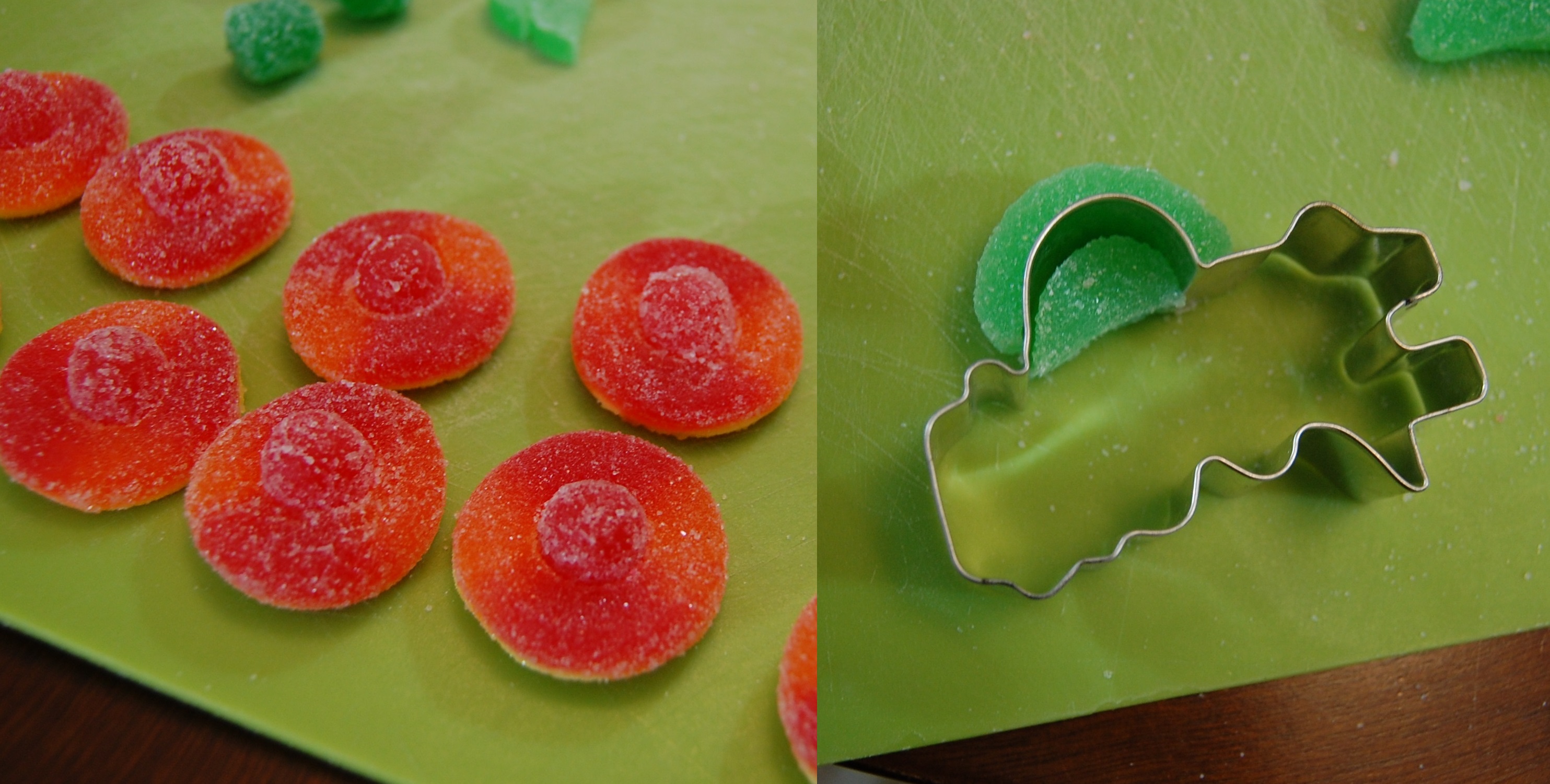 I followed the instructions linked here, except that I do not have a fondant cutter. Any cookie cutter with a small, rounded shape will do. Santa’s sack worked just fine. For eyes, I piped the tiniest dot of white frosting onto each side of the head. Then I pressed on a drupelet (learned a new word!) from a gummy blackberry. https://family.disney.com/recipe/squirt-happy-turtlecakes/