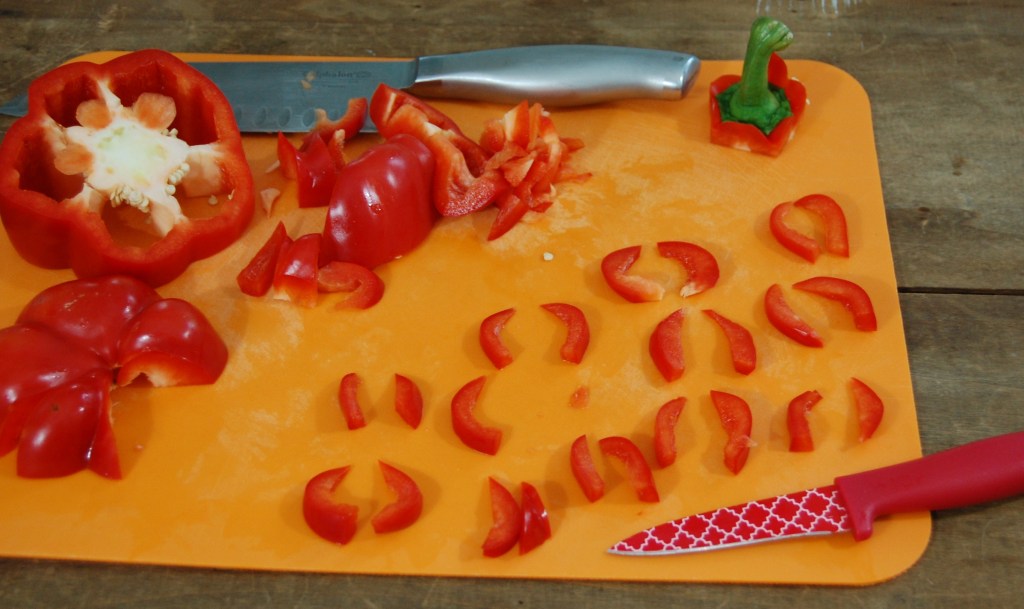 Deviled Eggs Slice thin ‘horns’ from the curved ends of a red bell pepper. Mine are about an inch long. Place two horns into each filled egg half.