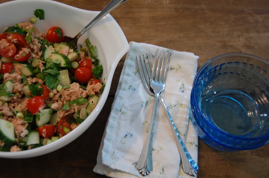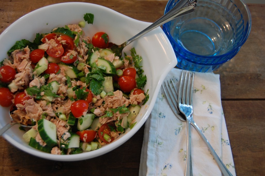 Lemony Cucumber and Tomato Tuna Salad – A perennial favorite. I still haven’t converted Mark to Team Avocado, so we sub English cucumbers for the avocado.