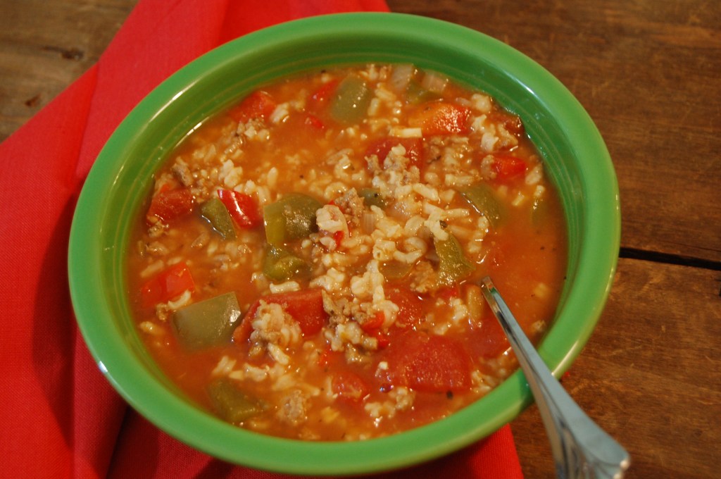 Hearty Stuffed Bell Pepper Soup – Hello, old friend! We’re subbing ground turkey for the beef in this recipe. The brown rice and ground meat make this a filling lunch.